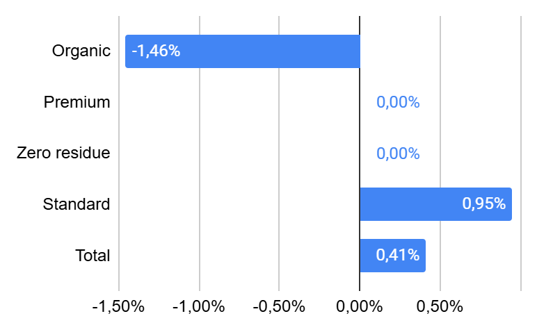 - 17% of the SKU's showed increased prices, with prices up by 24% compared to the previous week;