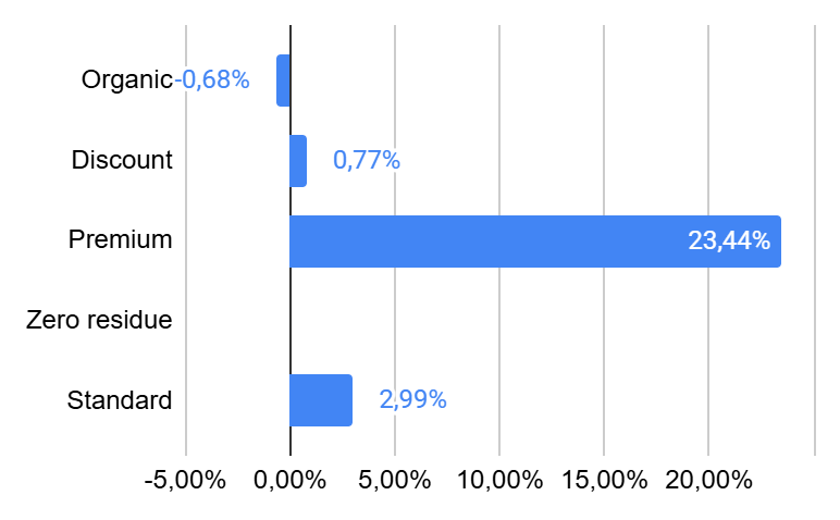 - 23% of the SKU's showed increased prices, with prices up by 25% compared to the previous week;