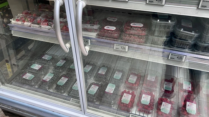 The stores visited featured between one and nine SKUs, with an average of 4.3 SKUs per store. In detail: 95% raspberries; 95% blueberries; 76% blackberries; 24% redcurrants; 29% berry mixes.