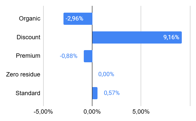 - 17% of the SKU's showed decreased prices, with prices down by 10% compared to the previous week.
