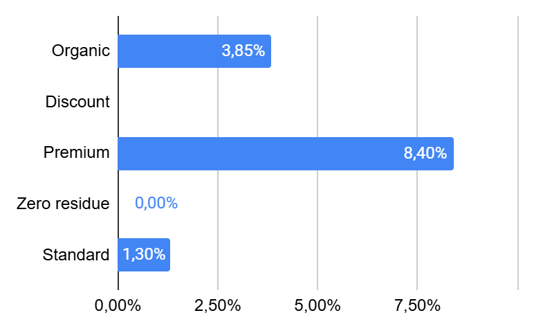 - 8% of the SKU's showed decreased prices, with prices down by 19% compared to the previous week.