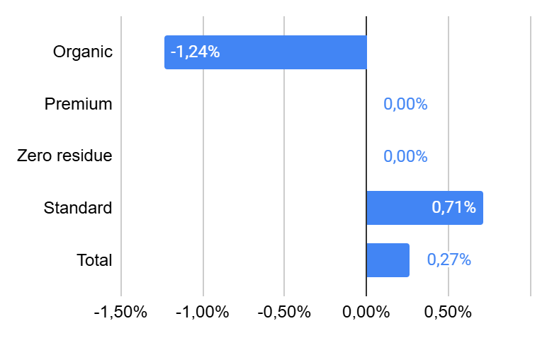 - 4% of the SKU's showed increased prices, with prices up by 33% compared to the previous week;
