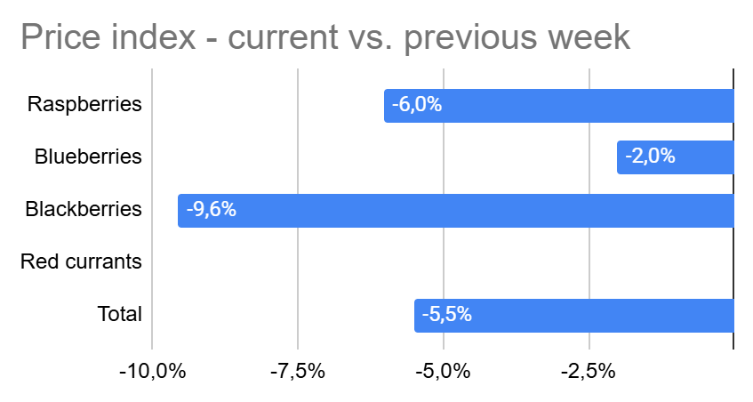 Italian retail prices in the berry category have shown the following variations in week 18/2026 compared to the previous week: