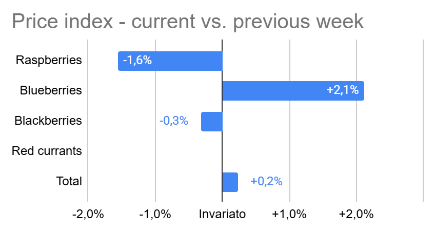 Italian retail prices in the berry category have shown the following variations in week 53/2025 compared to the previous week: