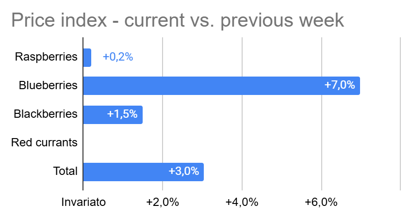 Italian retail prices in the berry category have shown the following variations in week 3/2026 compared to the previous week: