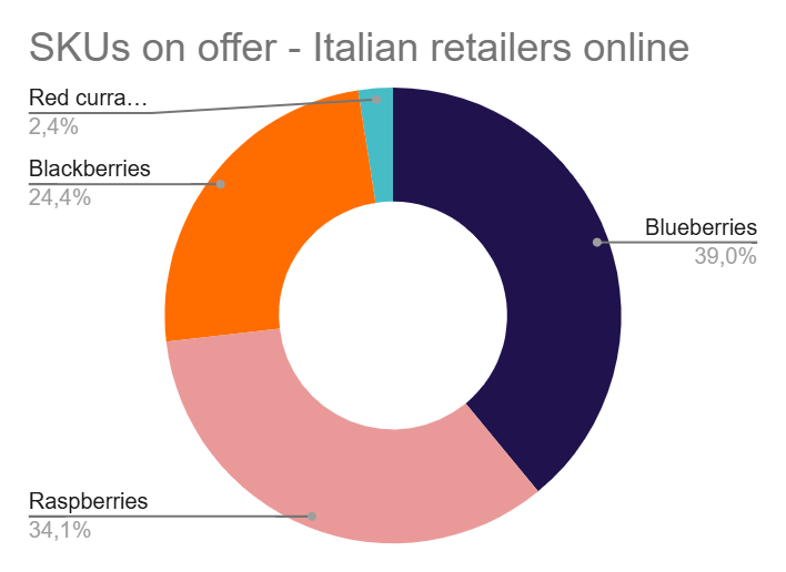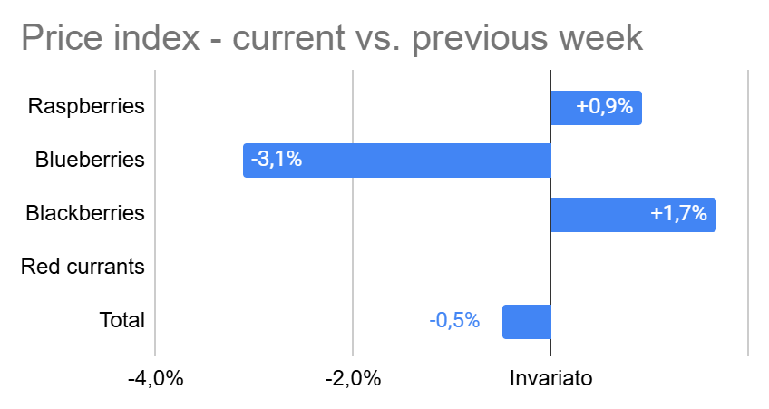 Italian retail prices in the berry category have shown the following variations in week 42/2025 compared to the previous week: