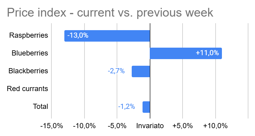 Italian retail prices in the berry category have shown the following variations in week 15/2026 compared to the previous week:
