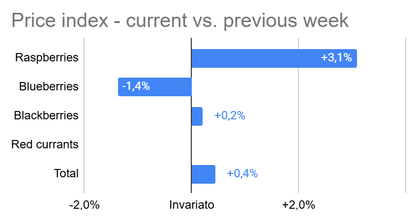 Italian retail prices in the berry category have shown the following variations in week 2/2026 compared to the previous week: