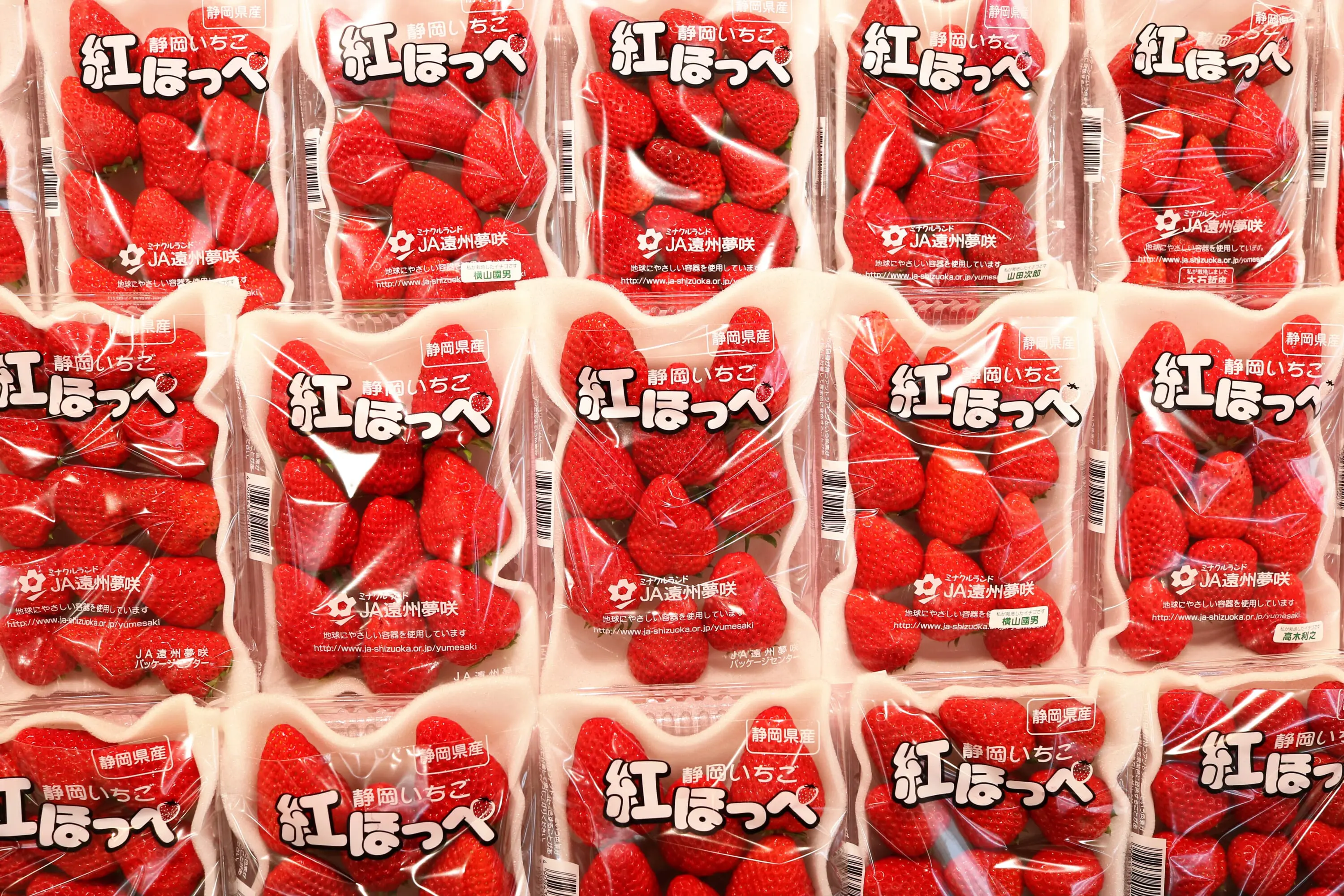 Benihoppe strawberries grown in Shizuoka are widely available in Tokyo during winter and early spring and are generally more affordable than premium gift varieties.