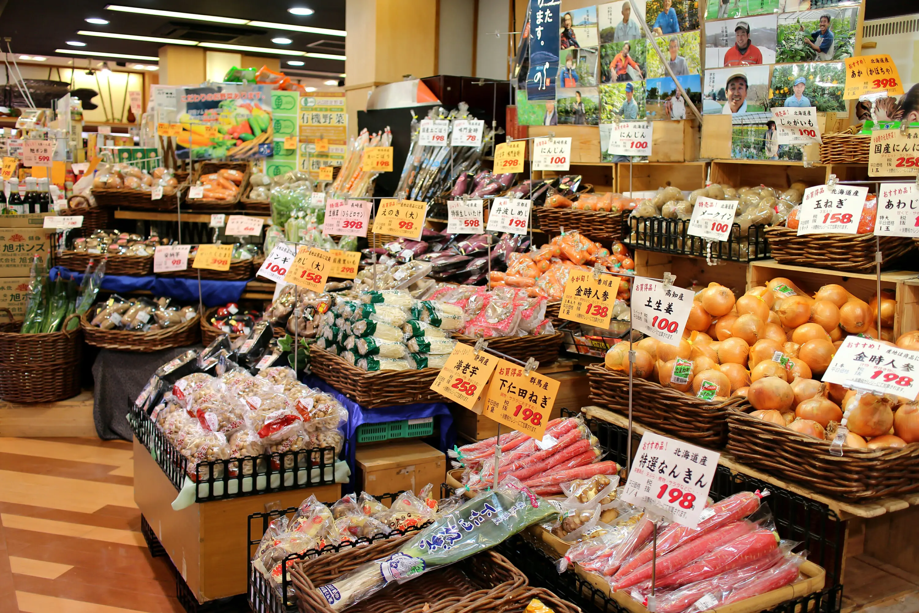 Greengrocers such as Oshimaya, Toyosu Kushiya and Bijinzuma Surugaya are known for selling fresh fruit alongside vegetables and pantry items.