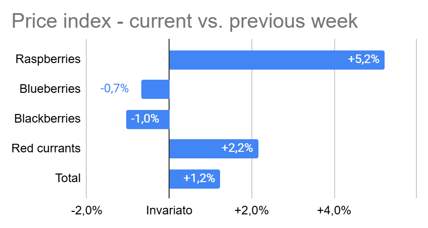 Italian retail prices in the berry category have shown the following variations in week 5/2026 compared to the previous week: