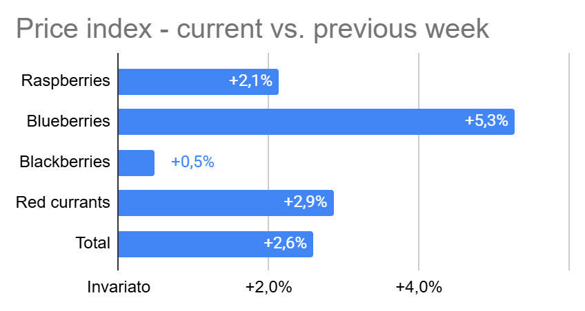 Italian retail prices in the berry category have shown the following variations in week 11/2026 compared to the previous week: