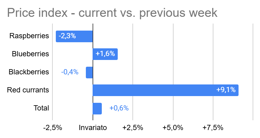 Italian retail prices in the berry category have shown the following variations in week 50/2025 compared to the previous week: