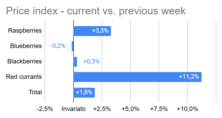 Italian retail prices in the berry category have shown the following variations in week 7/2026 compared to the previous week: