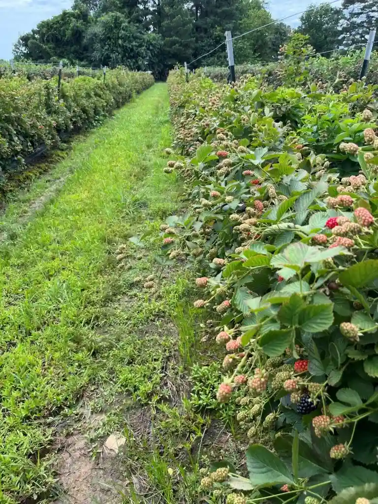 Pre-commercial planting of Sweet-Ark® Immaculate™ in central Arkansas. 18 June 2025. Photo credit: Carmen Johns, UADA Research Scientist, Assistant Fruit Breeder.