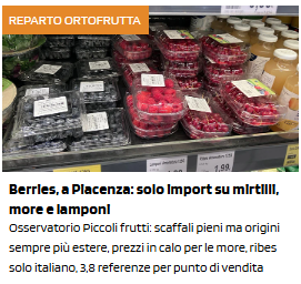 Insegne in ordine di prezzo (€/kg) medio decrescente della categoria dei piccoli frutti