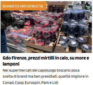 Insegne in ordine di prezzo (€/kg) medio decrescente della categoria dei piccoli frutti