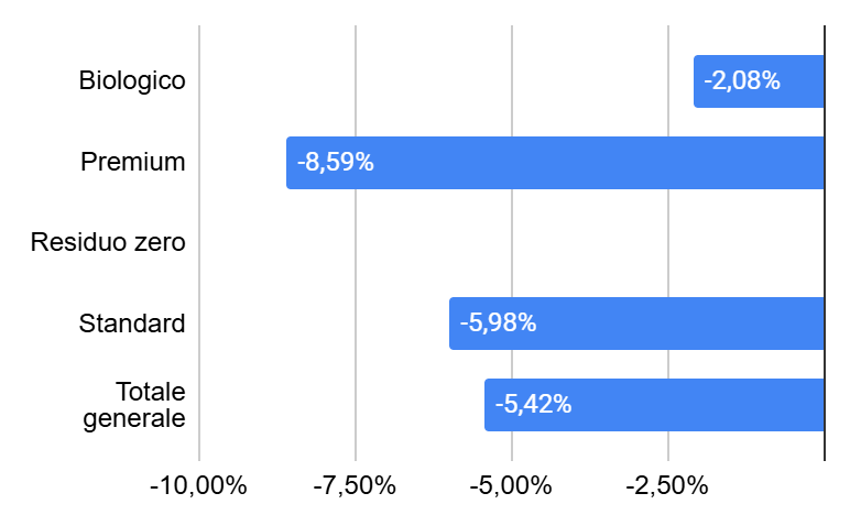 - Sul 9% delle referenze sono stati rilevati prezzi in aumento, con prezzi aumentati del 11% rispetto alla settimana precedente;