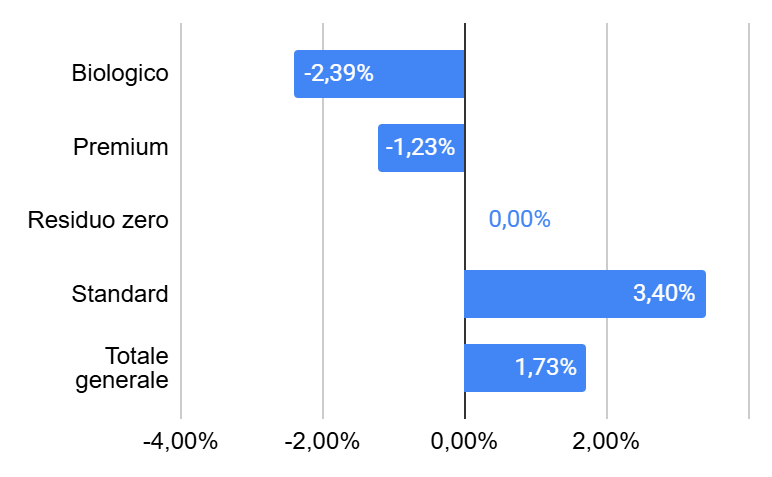 (per segmento rispetto alla settimana precedente)