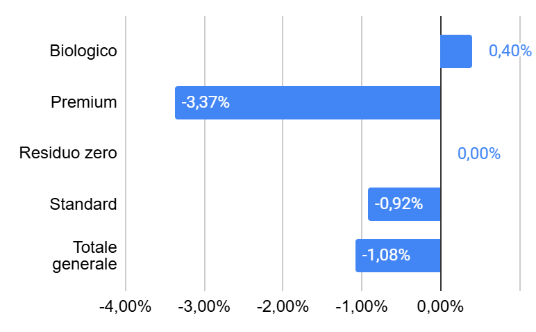 - Sul 2% delle referenze sono stati rilevati prezzi in aumento, con prezzi aumentati del 3% rispetto alla settimana precedente;