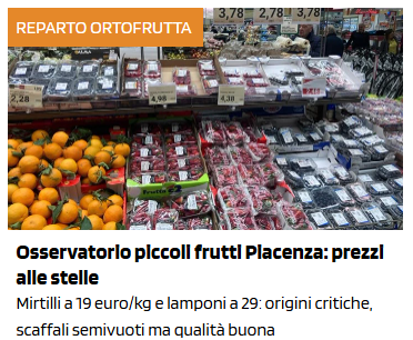 Insegne in ordine di prezzo (€/kg) medio decrescente della categoria dei piccoli frutti